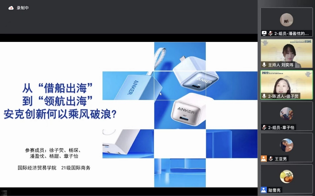 2022年6月10下午,由yl9193永利官网研究生工作部、研究生院主办的第七届专业学位研究生案例大赛答辩会以线上的形式于腾讯会议成功举办。永利官网国际商务系蒙双副教授指导的国际商务硕士专业学位研究生徐子荧、杨琛、章子怡、潘盈忱、杨甜五名同学组成的团队成功以初赛第一名的成绩入围决赛,并以决赛总分第一的成绩喜获一等奖。