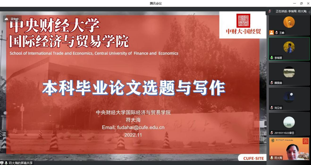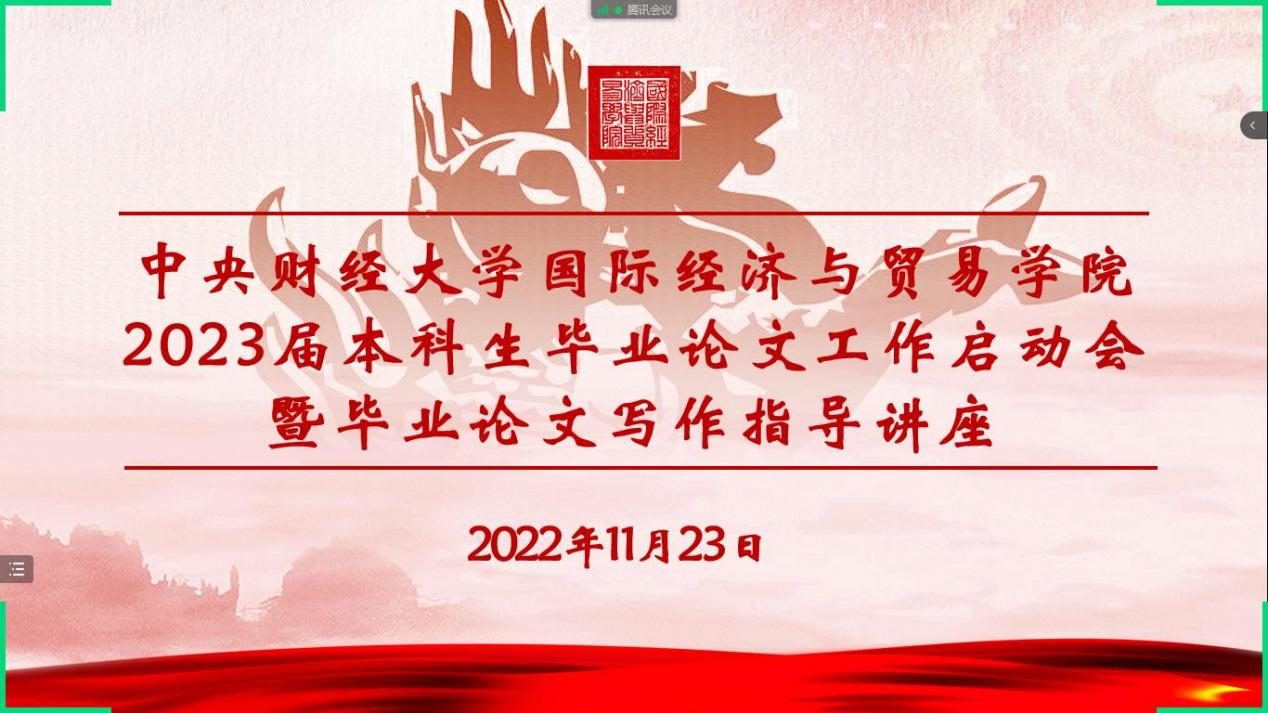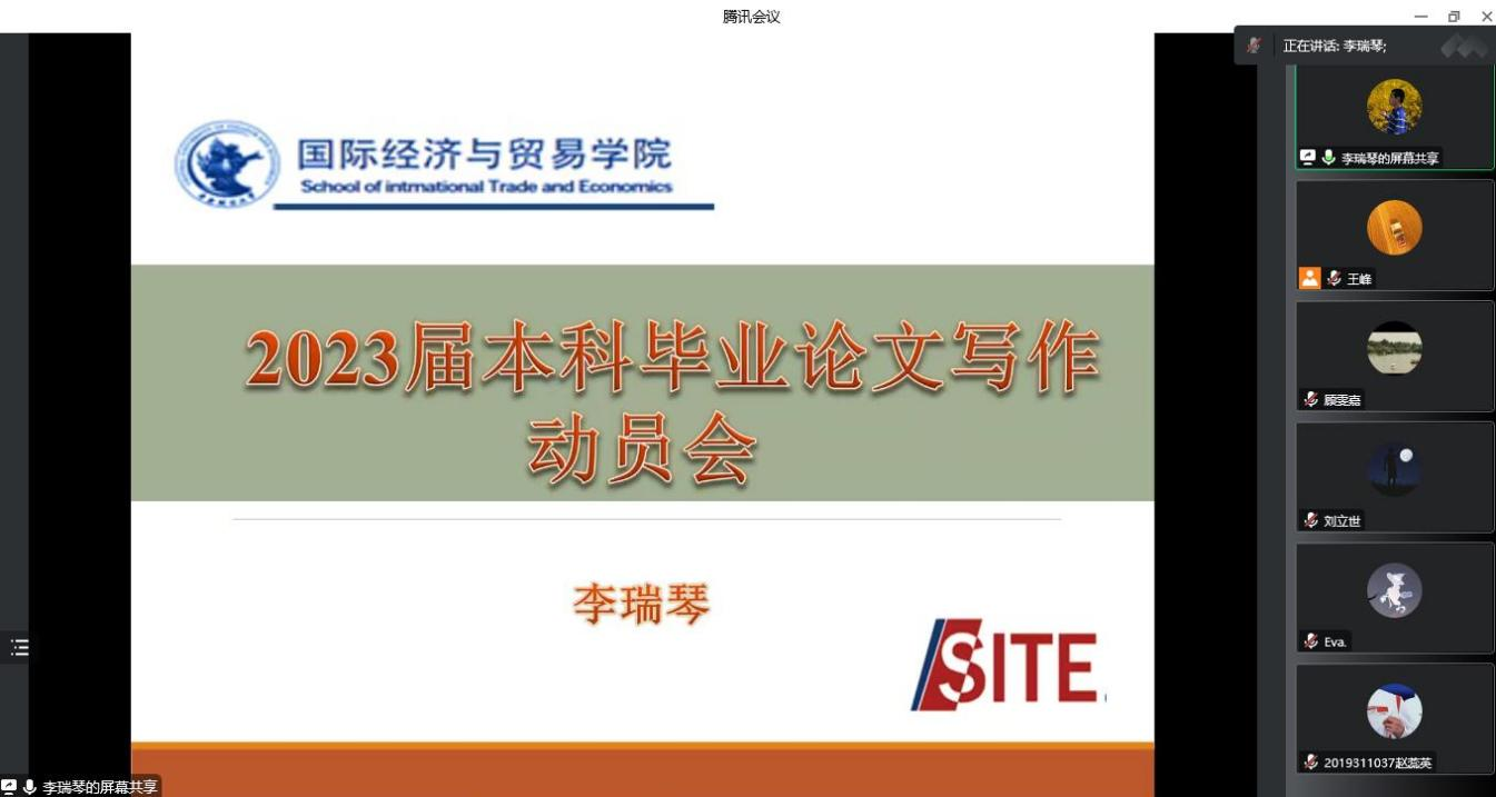 为了帮助2023届毕业生更好地开展毕业论文写作,2022年11月23日下午,yl9193永利官网在腾讯会议举行了2023届本科生毕业论文工作启动会暨毕业论文写作指导讲座。李瑞琴副院长对本年度毕业论文工作进行了动员布置,教学科研管理办公室王峰老师对毕业论文相关要求及注意事项进行了说明,符大海老师作了题为“本科毕业论文选题与写作”的讲座。学院2023届本科生参加了本次活动。